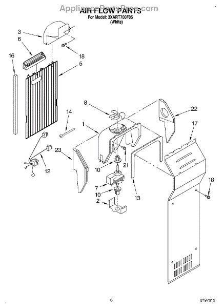 Parts for Whirlpool 3XART700F05: 04 - Air Flow Parts