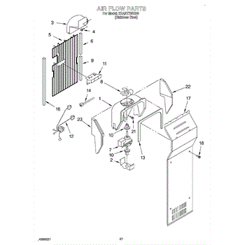This fan scroll is the plastic housing that surrounds the evaporator fan in the freezer section. It directs air across the evaporator coils and into the ducts, helping your refrigerator move cold air evenly and maintain stable temperatures.