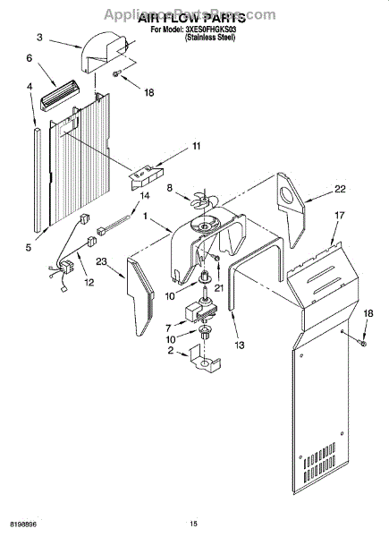 This fan scroll is the molded blower housing that directs airflow from the appliance fan for efficient cooling and ventilation. Replacing a damaged scroll restores proper air path and reduces airflow noise or performance issues. What it does