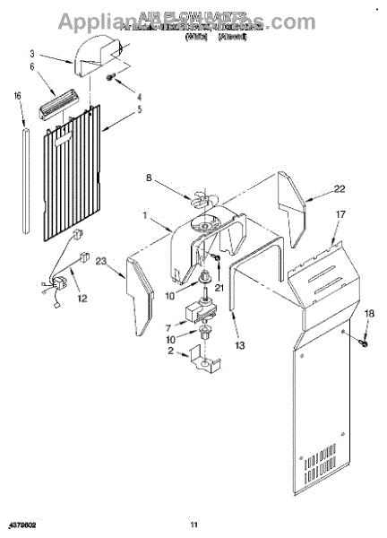 This fan scroll is the molded blower housing that directs airflow from the appliance fan for efficient cooling and ventilation. Replacing a damaged scroll restores proper air path and reduces airflow noise or performance issues. What it does