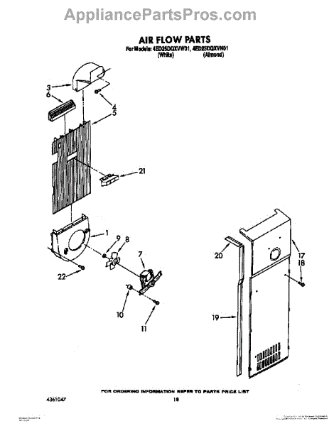 Parts for Whirlpool 4ED25DQXVN01: 12 - Air Flow Parts