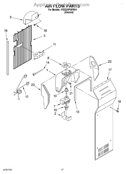 Parts for Whirlpool 4YED25PQFN04: 10 - Air Flow Parts