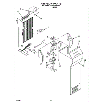This fan scroll is the molded blower housing that directs airflow from the appliance fan for efficient cooling and ventilation. Replacing a damaged scroll restores proper air path and reduces airflow noise or performance issues. What it does