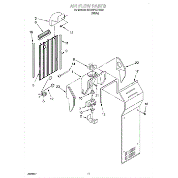 This fan scroll is the molded blower housing that directs airflow from the appliance fan for efficient cooling and ventilation. Replacing a damaged scroll restores proper air path and reduces airflow noise or performance issues. What it does