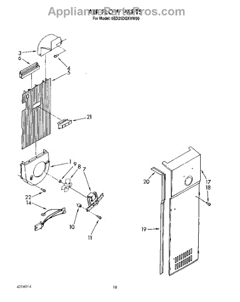 Parts for Whirlpool 6ED25DQXVW00: 12 - Air Flow Parts