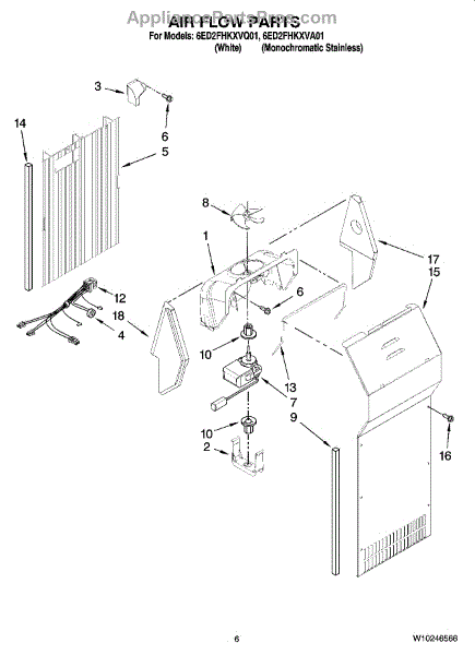 This fan scroll is the molded blower housing that directs airflow from the appliance fan for efficient cooling and ventilation. Replacing a damaged scroll restores proper air path and reduces airflow noise or performance issues. What it does