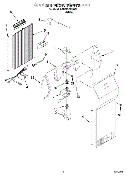 This fan scroll is the molded blower housing that directs airflow from the appliance fan for efficient cooling and ventilation. Replacing a damaged scroll restores proper air path and reduces airflow noise or performance issues. What it does