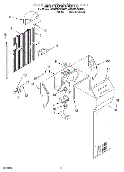 This fan scroll is the plastic housing that surrounds the evaporator fan in the freezer section. It directs air across the evaporator coils and into the ducts, helping your refrigerator move cold air evenly and maintain stable temperatures.