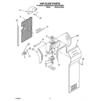 This fan scroll is the plastic housing that surrounds the evaporator fan in the freezer section. It directs air across the evaporator coils and into the ducts, helping your refrigerator move cold air evenly and maintain stable temperatures.