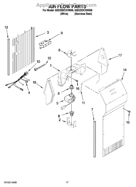 Parts for Whirlpool 6GD25DCXHW09: 10 - Air Flow Parts
