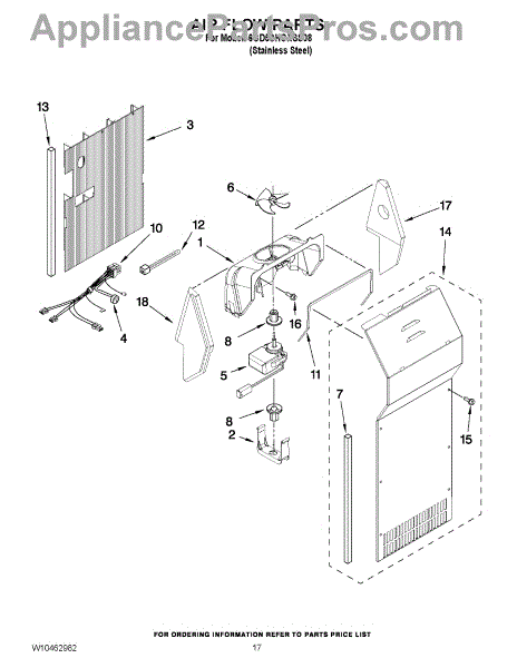 This fan scroll is the plastic housing that surrounds the evaporator fan in the freezer section. It directs air across the evaporator coils and into the ducts, helping your refrigerator move cold air evenly and maintain stable temperatures.