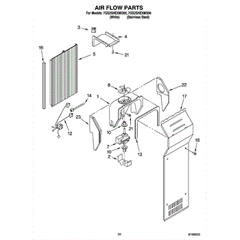 This fan scroll is the molded blower housing that directs airflow from the appliance fan for efficient cooling and ventilation. Replacing a damaged scroll restores proper air path and reduces airflow noise or performance issues. What it does