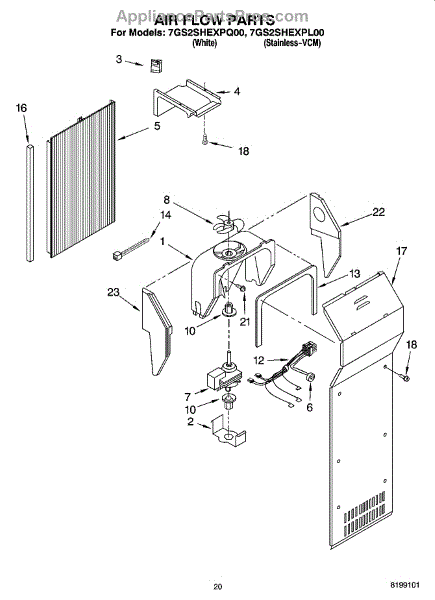 This fan scroll is the molded blower housing that directs airflow from the appliance fan for efficient cooling and ventilation. Replacing a damaged scroll restores proper air path and reduces airflow noise or performance issues. What it does