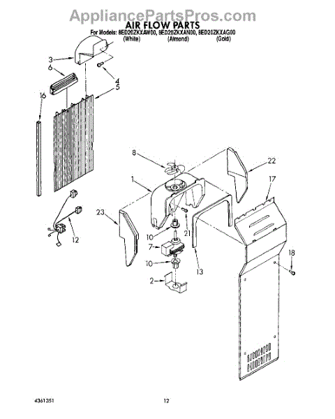This fan scroll is the molded blower housing that directs airflow from the appliance fan for efficient cooling and ventilation. Replacing a damaged scroll restores proper air path and reduces airflow noise or performance issues. What it does