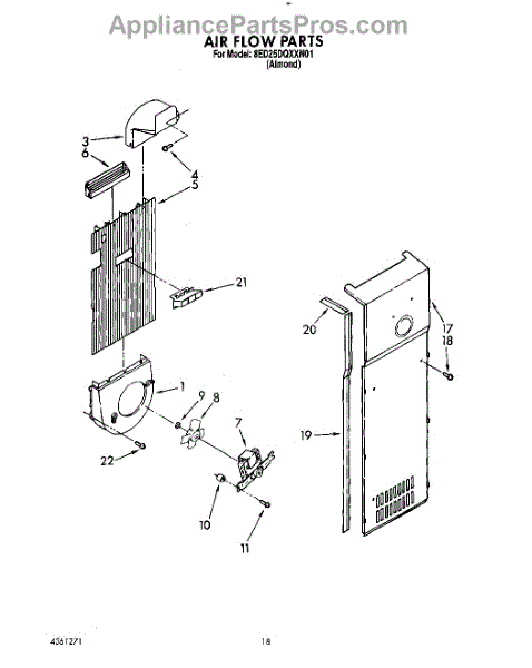 Parts for Whirlpool 8ED25DQXXN01: 11 - Air Flow Parts