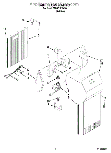 The Evaporator Fan Motor is an OEM replacement part for Whirlpool refrigerators. Located inside the refrigerator compartment, it powers the evaporator fan, which circulates air across the cooling coils. This is the motor only. For the blade order part number WP2169142.