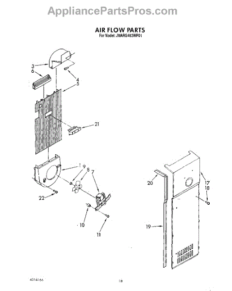 Molded plastic deflector that directs cold air around the icemaker assembly. Replace if cracked, broken, or missing to restore proper airflow routing.
