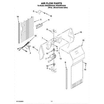 This fan scroll is the molded blower housing that directs airflow from the appliance fan for efficient cooling and ventilation. Replacing a damaged scroll restores proper air path and reduces airflow noise or performance issues. What it does