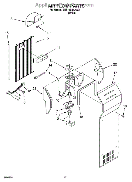 The Evaporator Fan Motor is an OEM replacement part for Whirlpool refrigerators. Located inside the refrigerator compartment, it powers the evaporator fan, which circulates air across the cooling coils. This is the motor only. For the blade order part number WP2169142.
