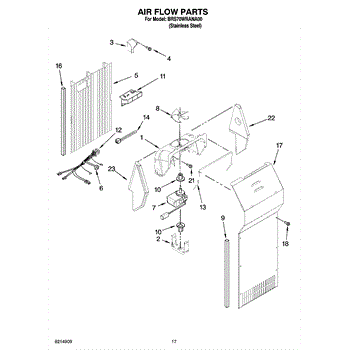 This fan scroll is the plastic housing that surrounds the evaporator fan in the freezer section. It directs air across the evaporator coils and into the ducts, helping your refrigerator move cold air evenly and maintain stable temperatures.