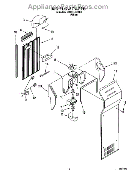 This fan scroll is the molded blower housing that directs airflow from the appliance fan for efficient cooling and ventilation. Replacing a damaged scroll restores proper air path and reduces airflow noise or performance issues. What it does