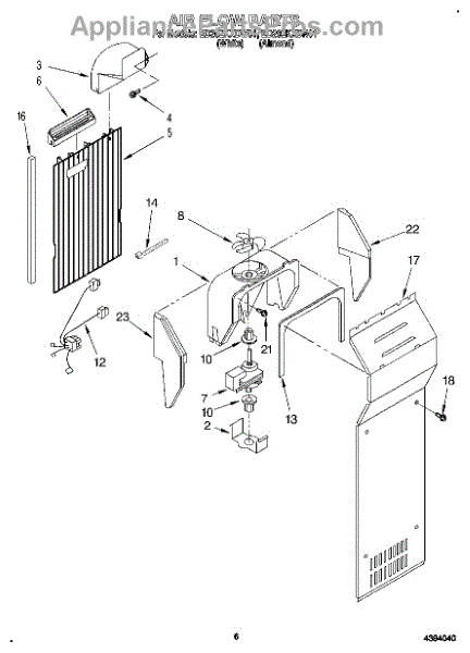 This fan scroll is the molded blower housing that directs airflow from the appliance fan for efficient cooling and ventilation. Replacing a damaged scroll restores proper air path and reduces airflow noise or performance issues. What it does