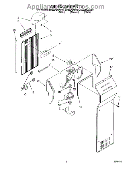 This fan scroll is the molded blower housing that directs airflow from the appliance fan for efficient cooling and ventilation. Replacing a damaged scroll restores proper air path and reduces airflow noise or performance issues. What it does