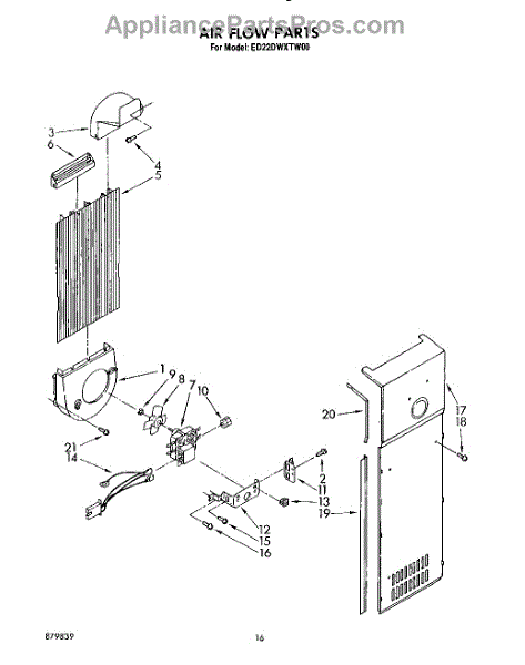 Parts for Whirlpool ED22DWXTN00: 11 - Air Flow Parts