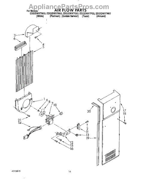 Parts for Whirlpool ED22DWXTW03: 11 - Air Flow Parts