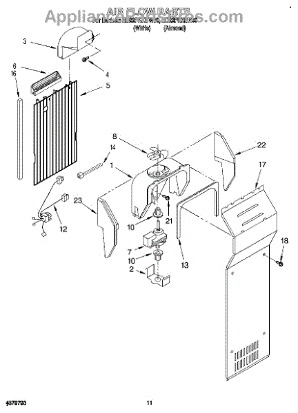 This fan scroll is the molded blower housing that directs airflow from the appliance fan for efficient cooling and ventilation. Replacing a damaged scroll restores proper air path and reduces airflow noise or performance issues. What it does