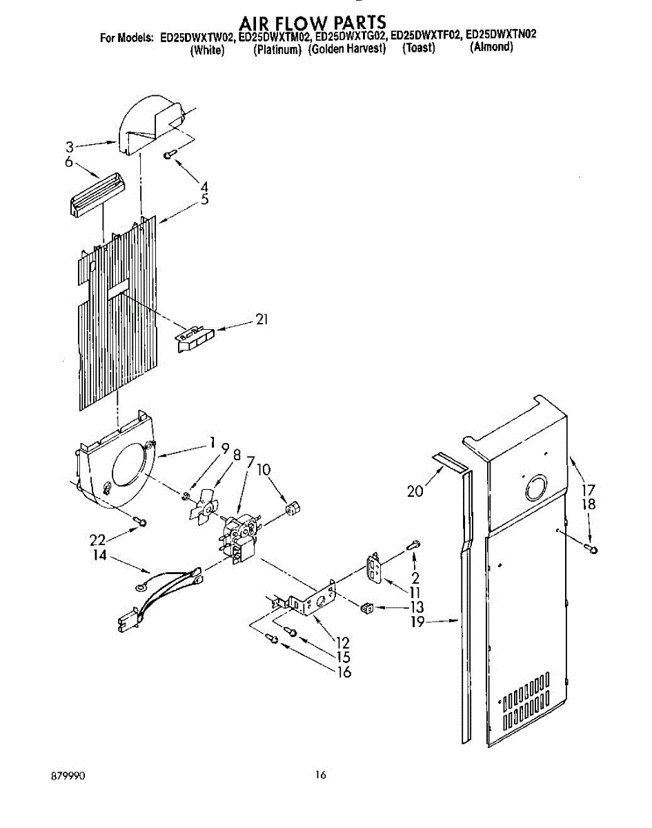Parts for Whirlpool ED25DWXTG02: 11 - Air Flow Parts