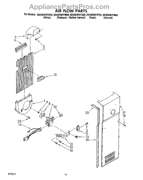 Parts for Whirlpool ED25DWXTN00: 11 - Air Flow Parts
