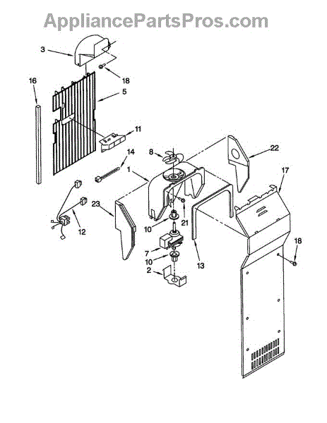 The Evaporator Fan Motor is an OEM replacement part for Whirlpool refrigerators. Located inside the refrigerator compartment, it powers the evaporator fan, which circulates air across the cooling coils. This is the motor only. For the blade order part number WP2169142.