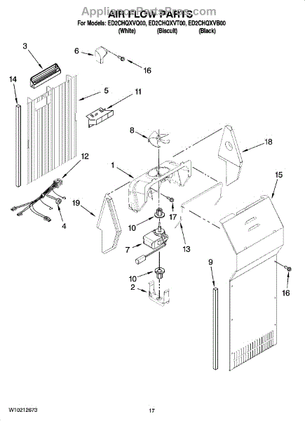 This fan scroll is the molded blower housing that directs airflow from the appliance fan for efficient cooling and ventilation. Replacing a damaged scroll restores proper air path and reduces airflow noise or performance issues. What it does