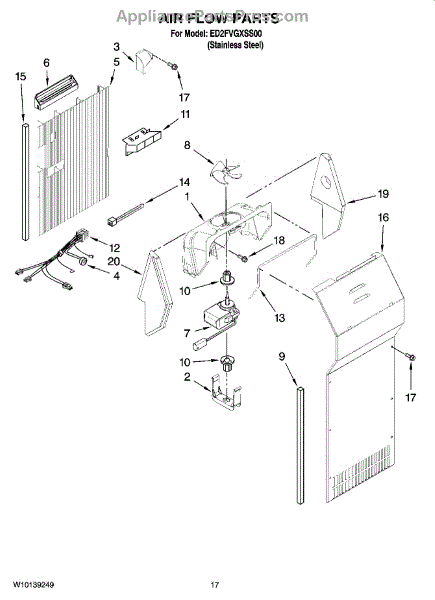 The Evaporator Fan Motor is an OEM replacement part for Whirlpool refrigerators. Located inside the refrigerator compartment, it powers the evaporator fan, which circulates air across the cooling coils. This is the motor only. For the blade order part number WP2169142.