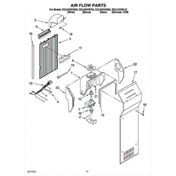 This fan scroll is the molded blower housing that directs airflow from the appliance fan for efficient cooling and ventilation. Replacing a damaged scroll restores proper air path and reduces airflow noise or performance issues. What it does