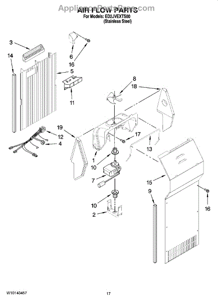 The Evaporator Fan Motor is an OEM replacement part for Whirlpool refrigerators. Located inside the refrigerator compartment, it powers the evaporator fan, which circulates air across the cooling coils. This is the motor only. For the blade order part number WP2169142.
