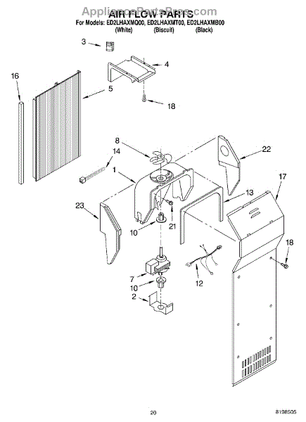 This fan scroll is the molded blower housing that directs airflow from the appliance fan for efficient cooling and ventilation. Replacing a damaged scroll restores proper air path and reduces airflow noise or performance issues. What it does