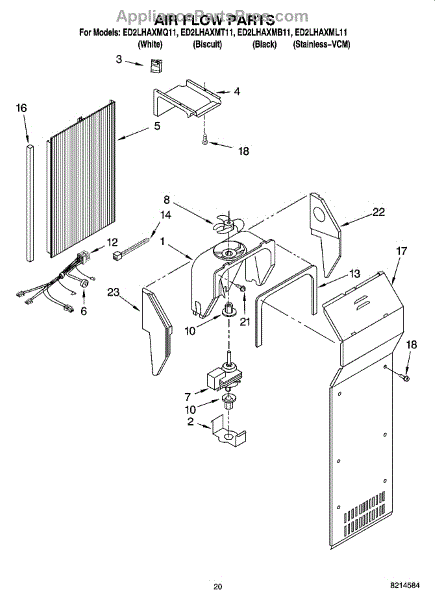 This fan scroll is the molded blower housing that directs airflow from the appliance fan for efficient cooling and ventilation. Replacing a damaged scroll restores proper air path and reduces airflow noise or performance issues. What it does