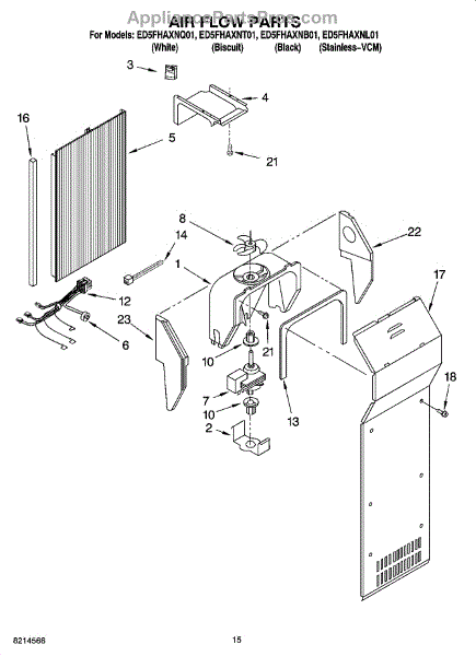 This fan scroll is the plastic housing that surrounds the evaporator fan in the freezer section. It directs air across the evaporator coils and into the ducts, helping your refrigerator move cold air evenly and maintain stable temperatures.