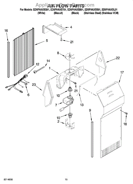 This fan scroll is the plastic housing that surrounds the evaporator fan in the freezer section. It directs air across the evaporator coils and into the ducts, helping your refrigerator move cold air evenly and maintain stable temperatures.