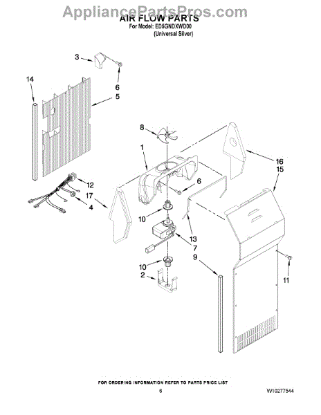 The Evaporator Fan Motor is an OEM replacement part for Whirlpool refrigerators. Located inside the refrigerator compartment, it powers the evaporator fan, which circulates air across the cooling coils. This is the motor only. For the blade order part number WP2169142.