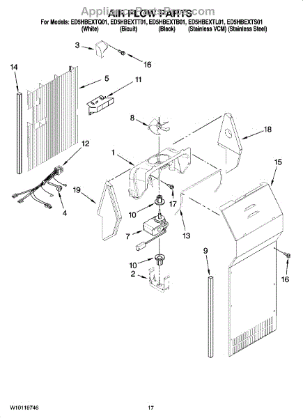 Parts for Whirlpool ED5HBEXTT01: 10 - Air Flow Parts