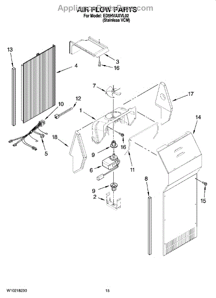 The Evaporator Fan Motor is an OEM replacement part for Whirlpool refrigerators. Located inside the refrigerator compartment, it powers the evaporator fan, which circulates air across the cooling coils. This is the motor only. For the blade order part number WP2169142.