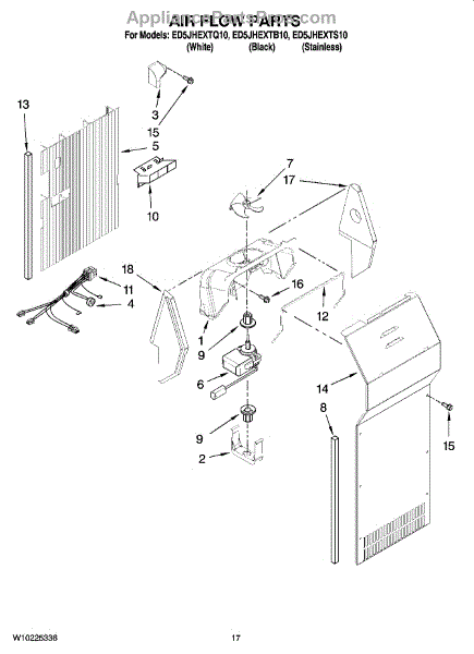 The Evaporator Fan Motor is an OEM replacement part for Whirlpool refrigerators. Located inside the refrigerator compartment, it powers the evaporator fan, which circulates air across the cooling coils. This is the motor only. For the blade order part number WP2169142.