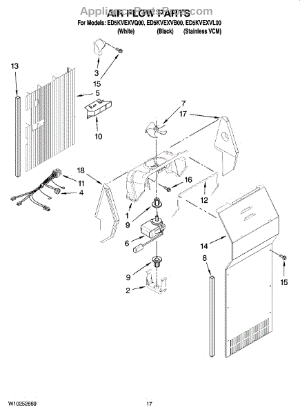 The Evaporator Fan Motor is an OEM replacement part for Whirlpool refrigerators. Located inside the refrigerator compartment, it powers the evaporator fan, which circulates air across the cooling coils. This is the motor only. For the blade order part number WP2169142.
