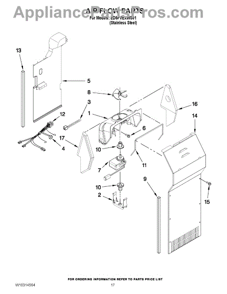 The Evaporator Fan Motor is an OEM replacement part for Whirlpool refrigerators. Located inside the refrigerator compartment, it powers the evaporator fan, which circulates air across the cooling coils. This is the motor only. For the blade order part number WP2169142.