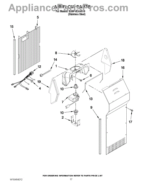 The Evaporator Fan Motor is an OEM replacement part for Whirlpool refrigerators. Located inside the refrigerator compartment, it powers the evaporator fan, which circulates air across the cooling coils. This is the motor only. For the blade order part number WP2169142.