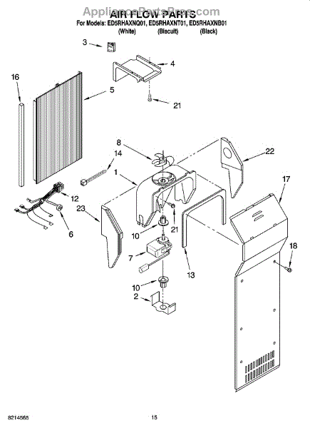 This fan scroll is the plastic housing that surrounds the evaporator fan in the freezer section. It directs air across the evaporator coils and into the ducts, helping your refrigerator move cold air evenly and maintain stable temperatures.