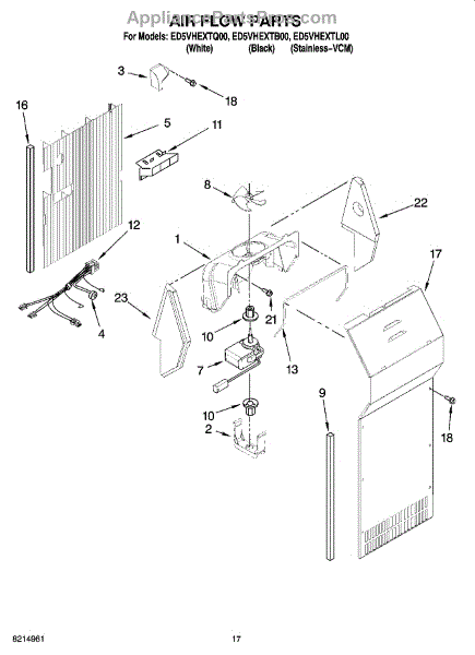 Parts for Whirlpool ED5VHEXTL00: 10 - Air Flow Parts